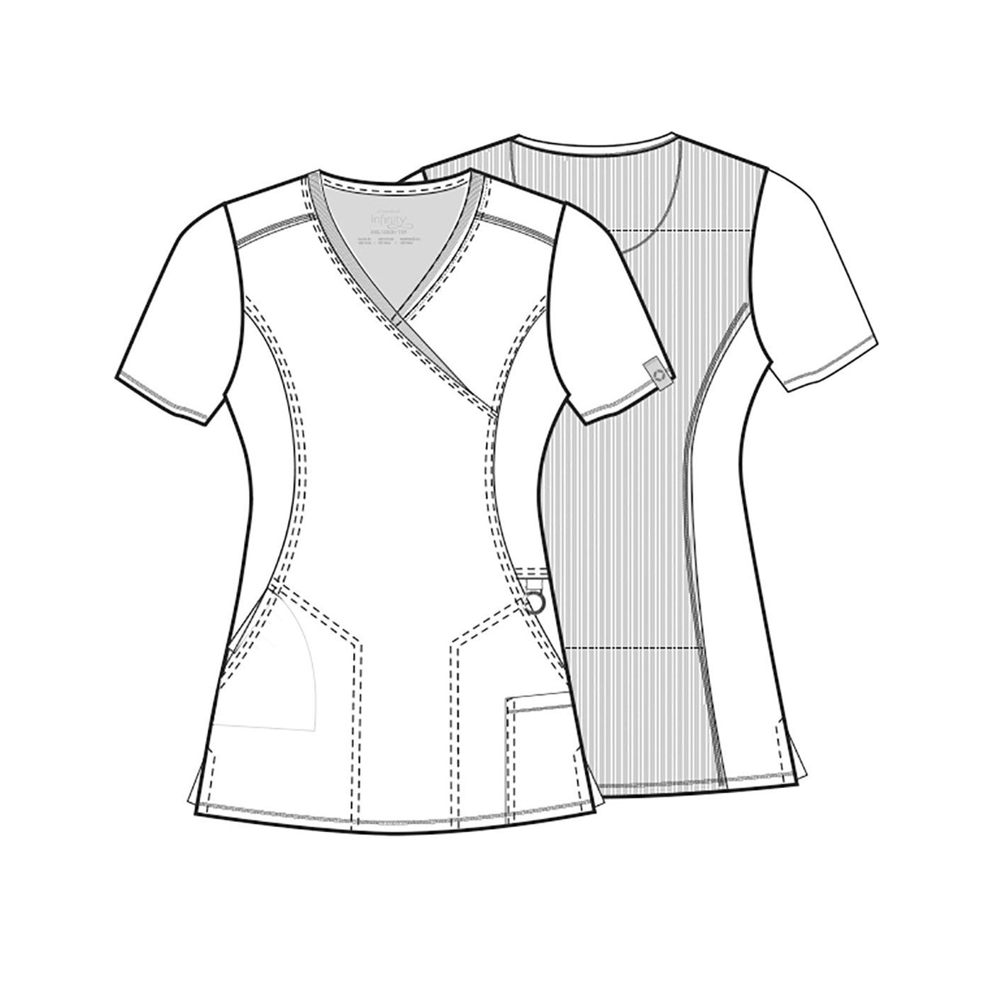 A Contemporary fit mock wrap top features two set-in front pockets, a logo O-ring above left pocket, left scissor pocket, one interior pocket, front and back princess seams, and side vents. Stretch rib knit at the center back panel gives this top its slimming shape and allows for extra movement and comfort. Center back length: 26". The comfortable stretch poplin fabric and super stretchy rib knit is the perfect combo for healthcare professionals.
