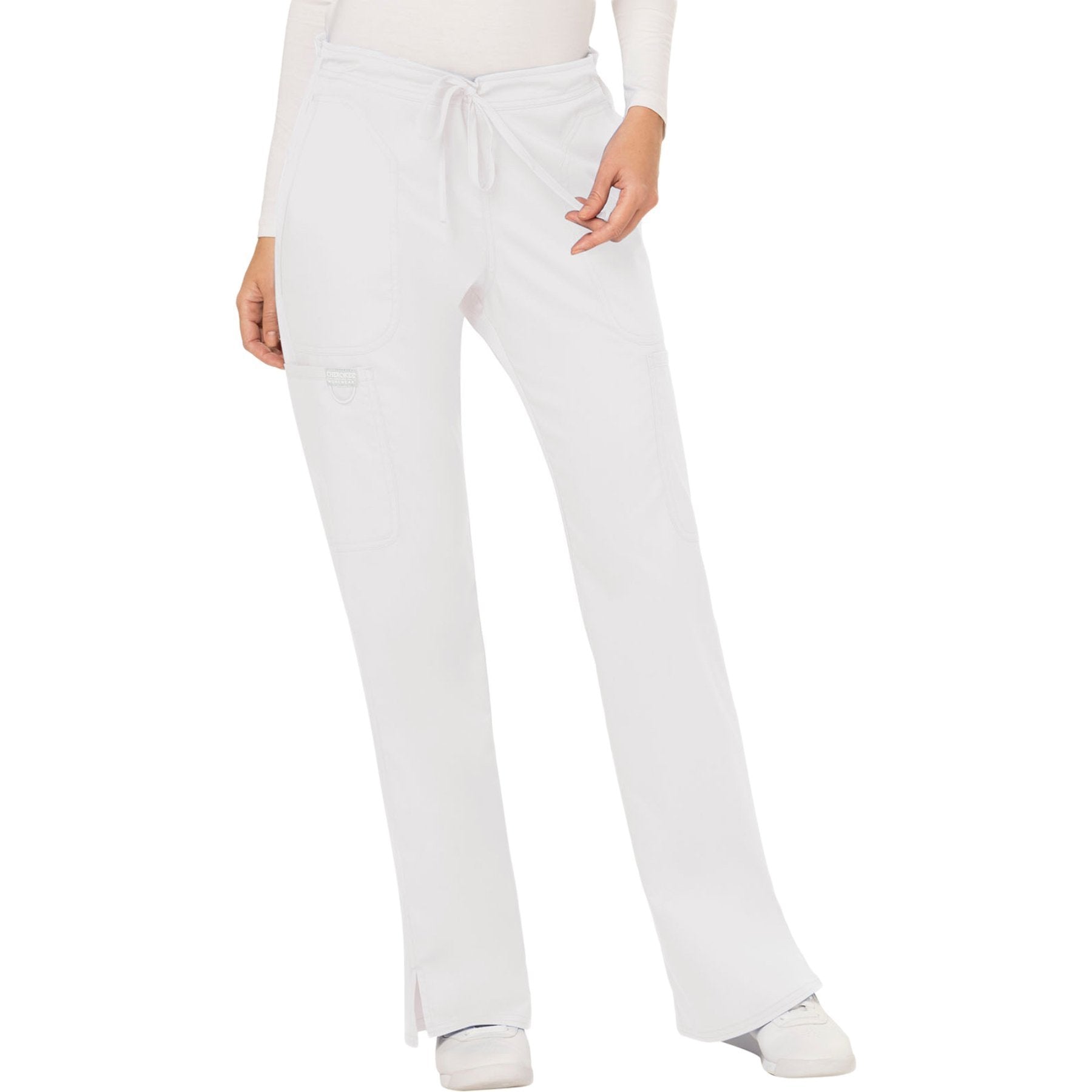 Cherokee Workwear Revolution WW120 Scrubs Pants Women's Mid Rise Moderate Flare Drawstring White