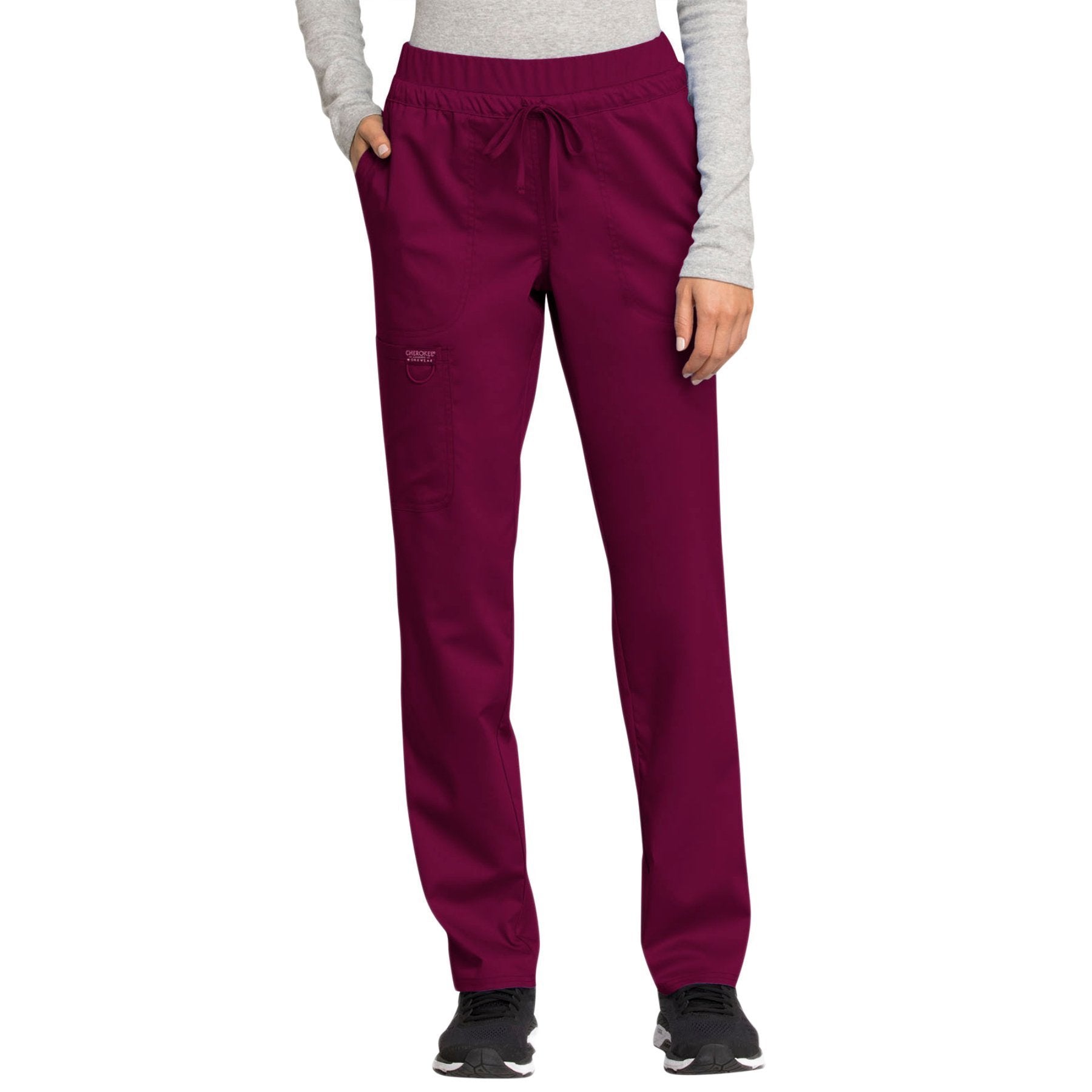 Cherokee Workwear Revolution WW105 Scrubs Pants Women's Mid Rise Tapered Leg Drawstring Wine